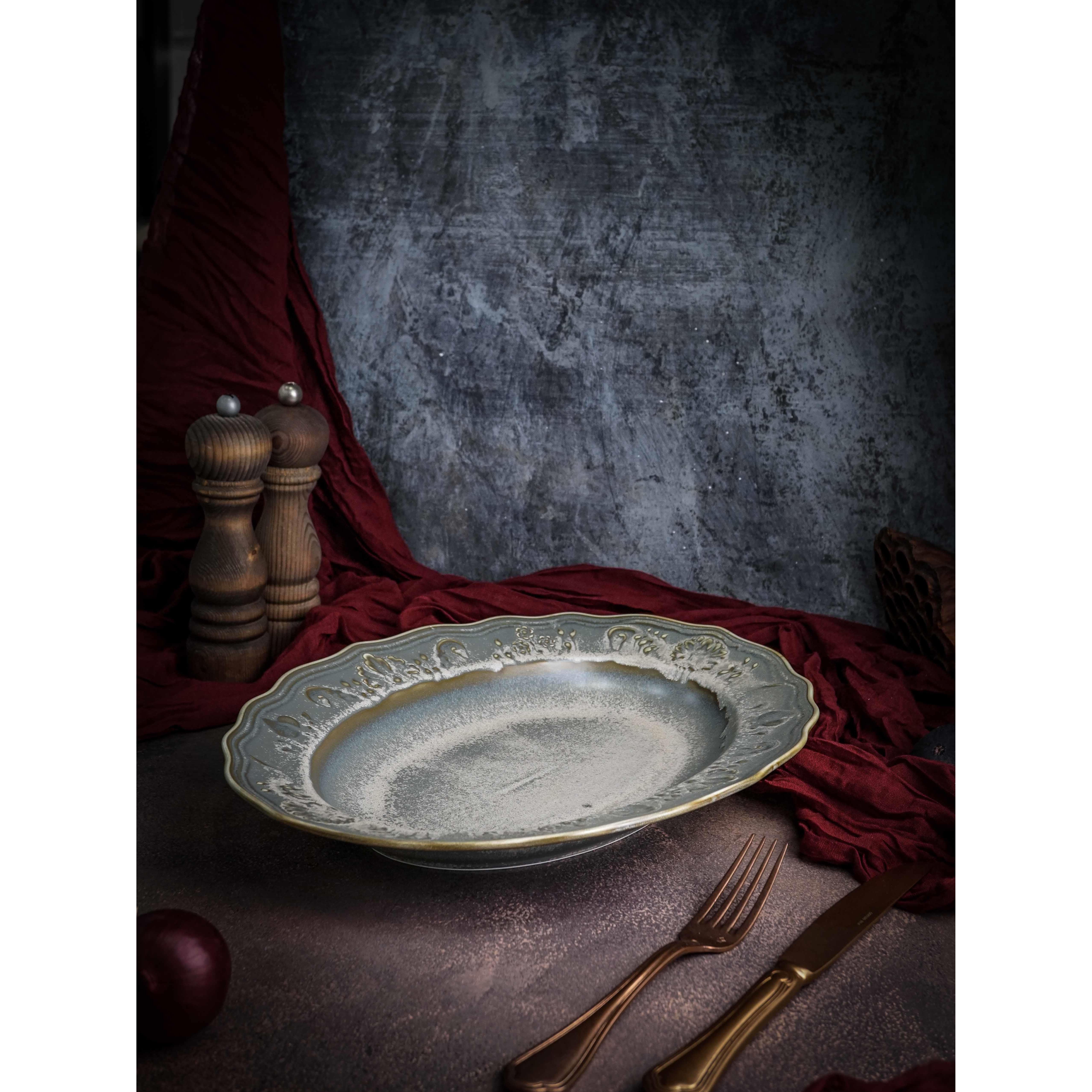 Коллекция Vintage создана для тех, кто хочет превратить каждую подачу в запоминающееся событие. Посуда отличается выразительным рельефом с природными мотивами — здесь чувствуется теплота натуральных форм и ручная эстетика. Благородные зелёные оттенки в сочетании с реактивной глазурью дают удивительный эффект: цвет живёт и дышит, переливается, а фактура становится объёмной и тактильно привлекательной.