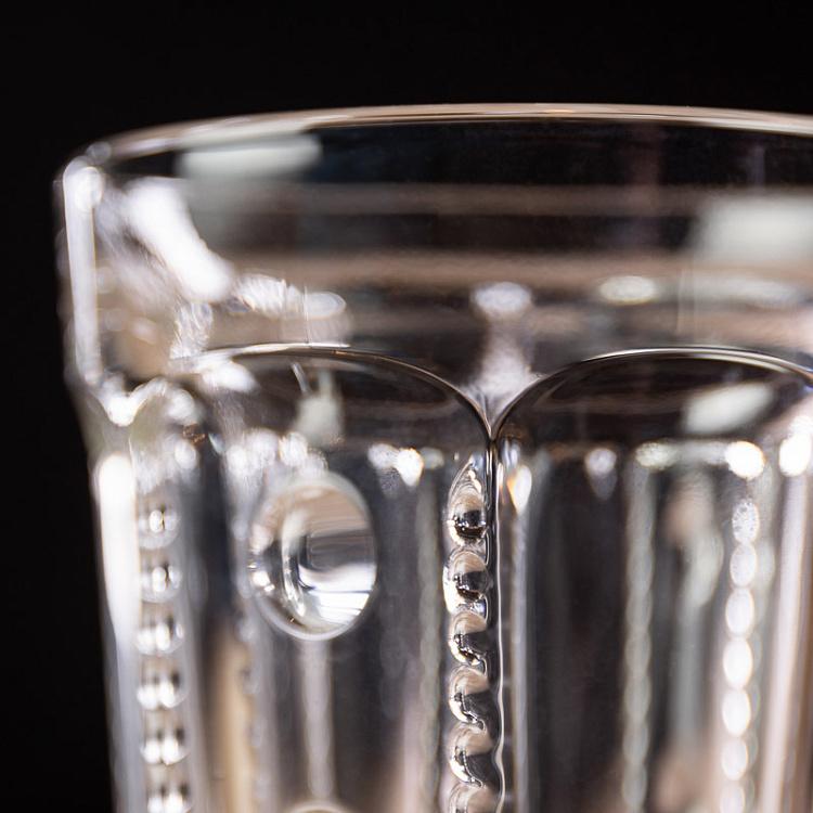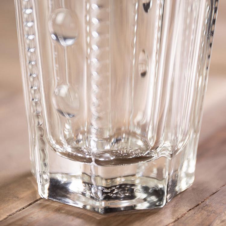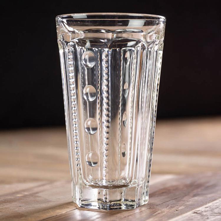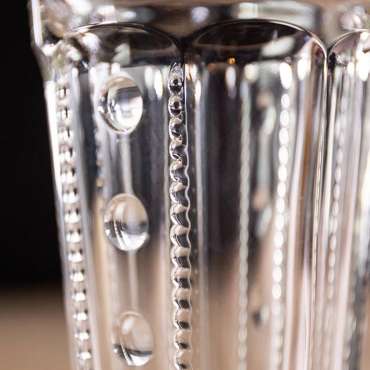 Высокие стаканы, вдохновлённые сдержанной красотой северного дизайна, украшены деликатным рельефом в виде жемчужин, создающим тактильно приятную поверхность и изысканную игру света. Их лаконичный, но выразительный силуэт идеально сочетает в себе чистую геометрию и природную поэзию.
