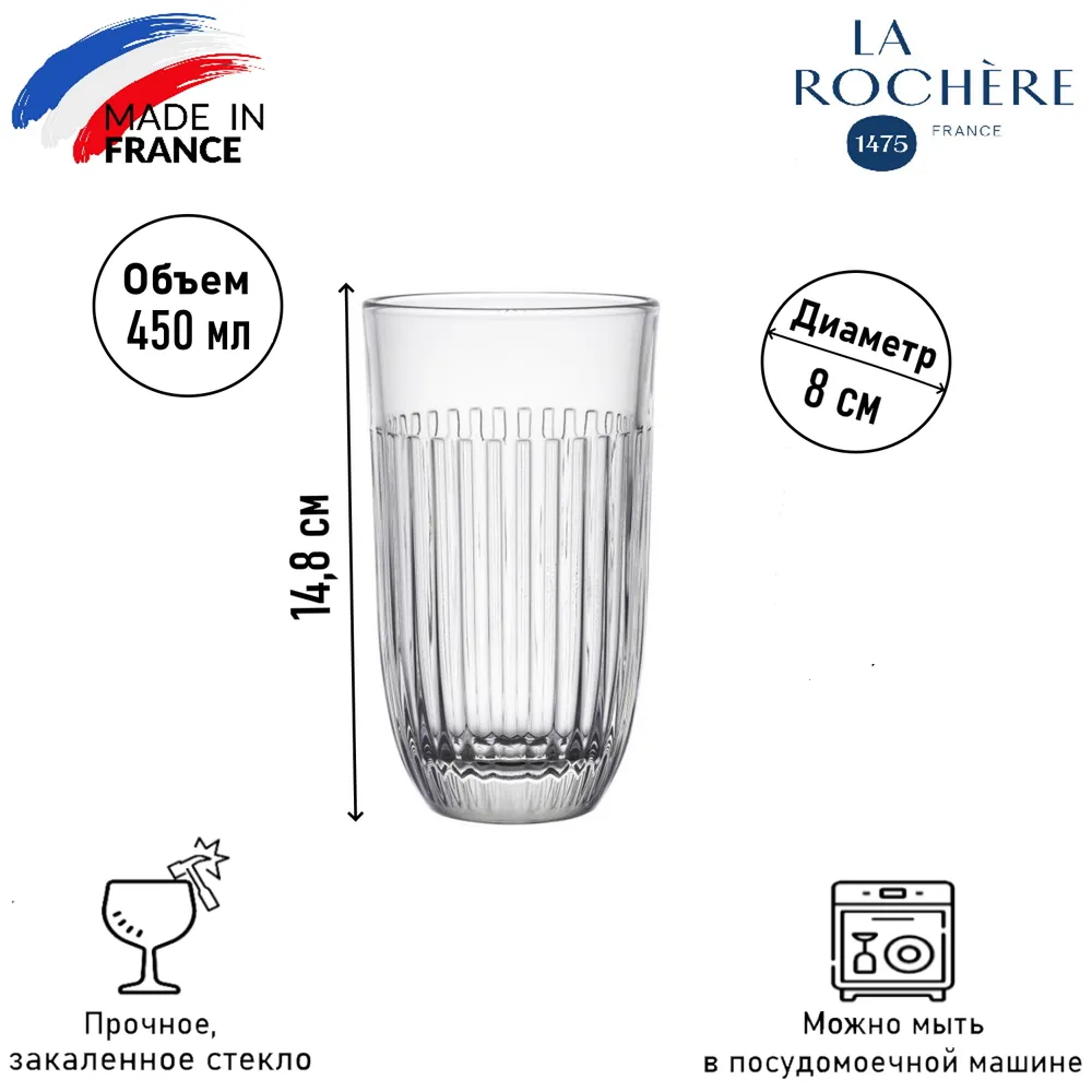 Набор из 6-ти стаканов H/B 450 мл, h 14,8 см, d 8,1 см OUESSANT, La Rochere