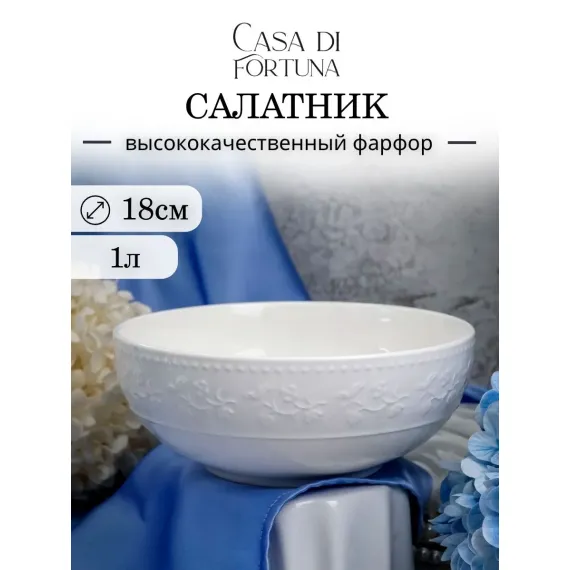 Cалатник объемом 1 литр из коллекции Primavera от Casa di Fortuna — настоящее воплощение весеннего пробуждения в мире фарфорового искусства, где изящество формы и нежность цветочного декора объединяются, чтобы превратить подачу любых блюд в маленький праздник природы.