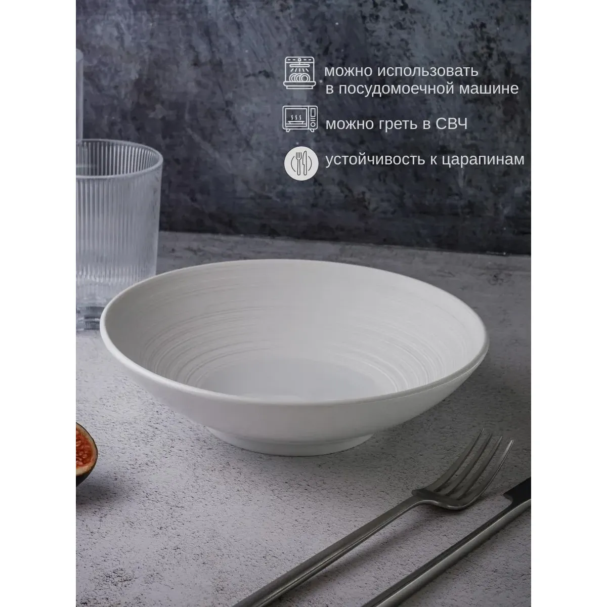 Стильная коллекция Linea подчёркивает творения шефов своей белоснежной поверхностью с необычным рельефом, позволяя блюдам стать яркими акцентами на безупречном полотне, и увеличенный формат этого салатника превращает даже простые ингредиенты в эффектную гастрономическую сцену, где каждый компонент находится в идеальном освещении.